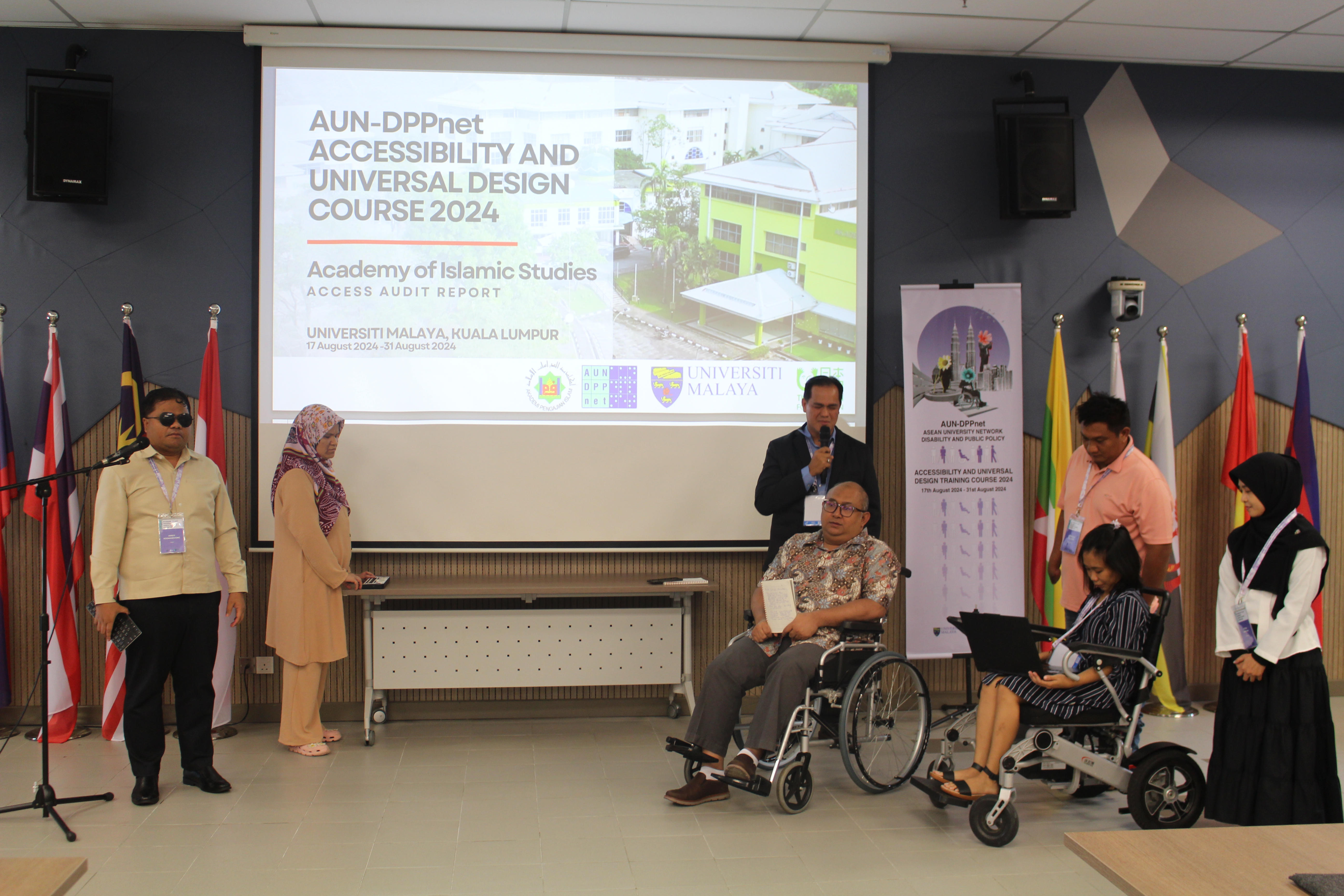 This year, the participants were divided into 2 groups and were provided with the opportunity to conduct access audits on 2 buildings at Universiti Malaya: The Academy of Islamic Studies and the Faculty of Law. Subsequently, they presented their audit reports to the Director of AUN-DPPnet, Prof. Dr. Yahaya, AUDT Program Leader, Dr. Mastura Adam, and Dr. Norafida. Their reports are send to the representatives of the respective faculty members to facilitate necessary improvements to the buildings.