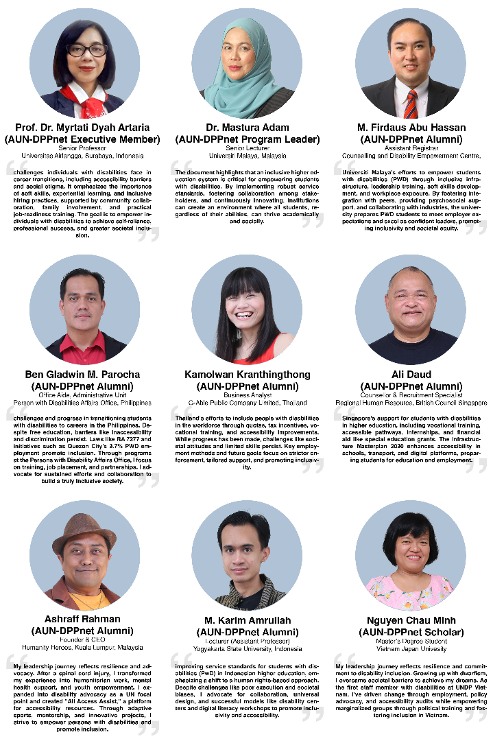 This year’s theme, "Student Leadership Development in Higher Education and Career Transition," highlights the importance of fostering leadership among students and its role in their transition into careers and employment. AUN-DPPnet proudly sent 9 representatives, consisting of both disabled and able-bodied scholars, alumni, program leaders, executive board members, and the director itself, for this three-day symposium. The lineup of speakers reflects AUN-DPPnet’s commitment to inclusivity and leadership, featuring diverse voices and experiences that aim to inspire and empower participants.