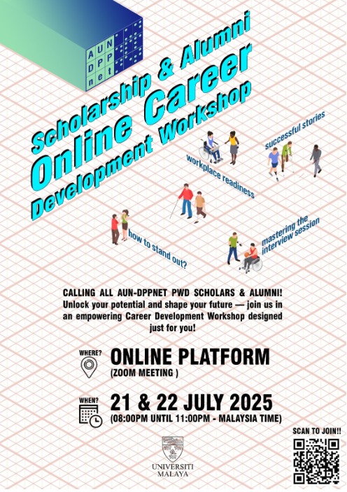 The ASEAN University Network – Disability and Public Policy Network (AUN-DPPnet) successfully organized the Scholarship and Alumni Online Career Development Workshop 2025, held virtually on 21–22 July 2025.